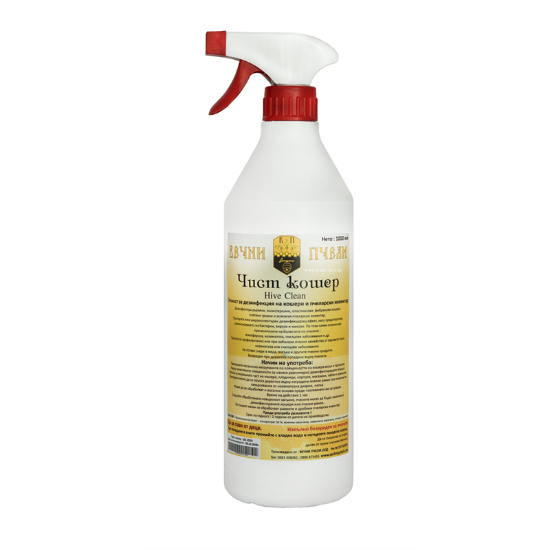 Чист Кошер – биологичен продукт за дезинфекция на кошери, рамки, дъна. Препарата има широкоспектърен